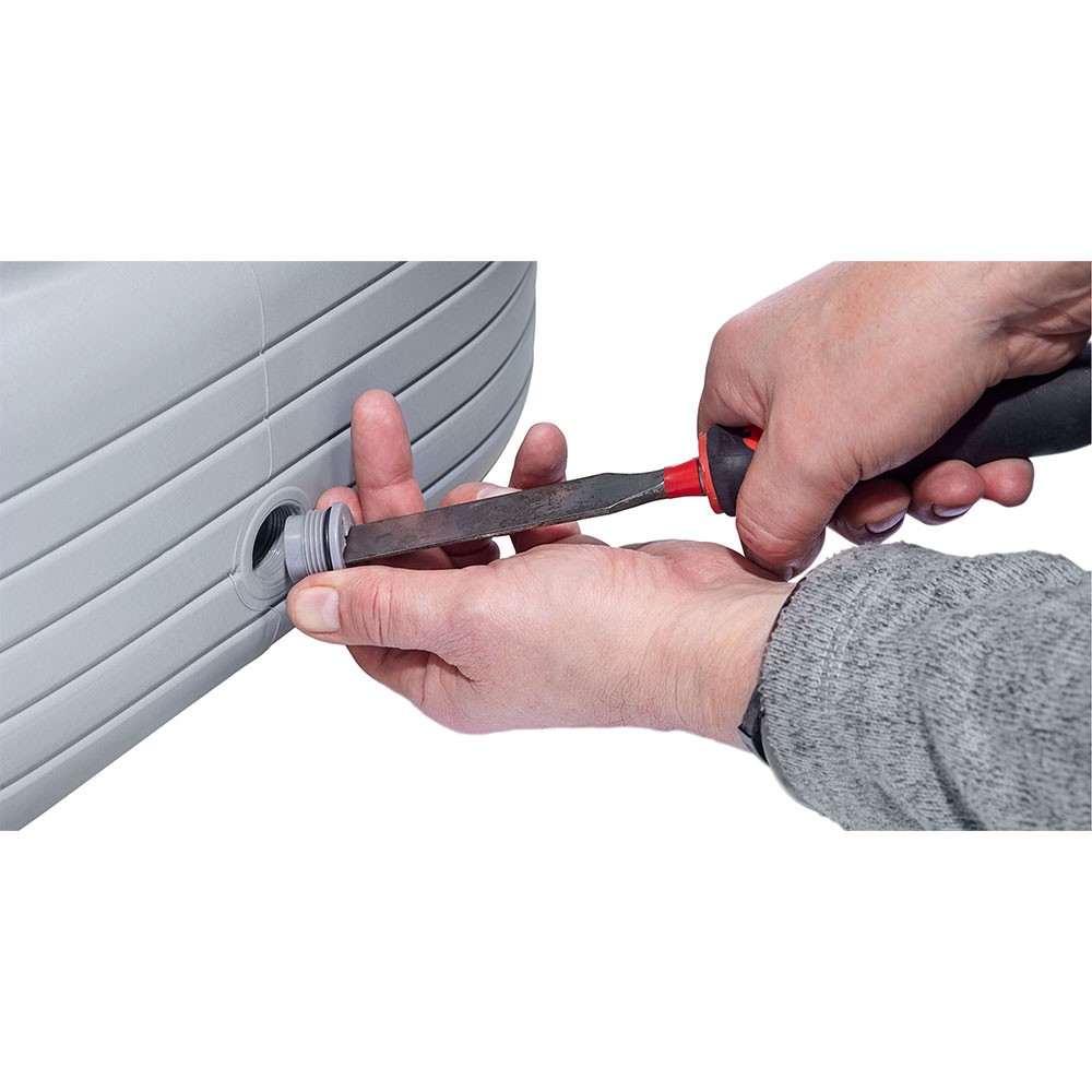 Nádrž je vybavená tromi možnosťami na pripojenie výpustného kohútika – na čelnej aj bočných stranách. Dva nízko umiestnené ¾" závitové otvory slúžia na napojenie hadicovej súpravy (voliteľné príslušenstvo) alebo na pohodlné vyprázdnenie vody pred zimným obdobím.